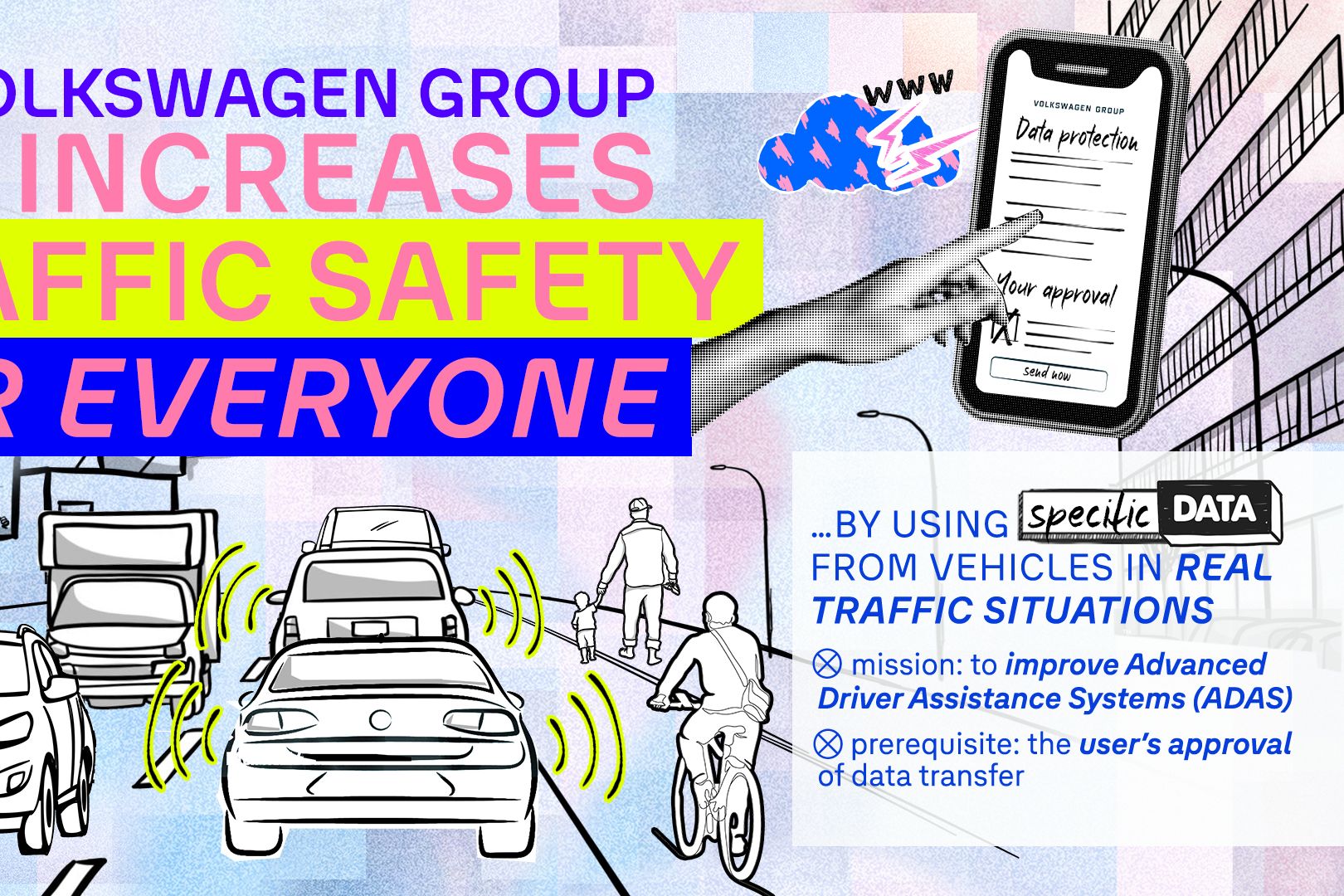 Rozsáhlý vozový park koncernu Volkswagen již dnes přispívá ke zlepšení bezpečnosti silničního provozu. Vozidla mimo jiné využívají anonymizovaná flotilová data (swarm data) k vytváření map s vysokým rozlišením. To pomáhá vozidlům například udržovat se v jízdním pruhu na silnicích bez vodorovného značení. Umožňuje to také přesná doporučení pro jízdu a výstrahy před nebezpečím, které lze upřesnit podle místních povětrnostních podmínek. Tato „moudrost davu“ již nyní dělá silniční dopravu pro všechny bezpečnější.