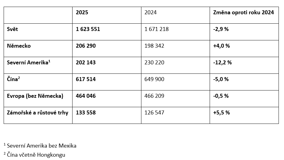 Geopolitické a ekonomické výzvy vyvíjely i v roce 2025 silný tlak na počty dodaných vozů. Prostředí intenzivní konkurence v Číně a celní politika v USA zasáhly celé automobilové odvětví a utvářely chování spotřebitelů na celém světě. Uvedené faktory se nakonec nepodařilo v plném rozsahu vykompenzovat solidními prodejními výsledky v Evropě, Německu a na zámořských a rozvíjejících se trzích.